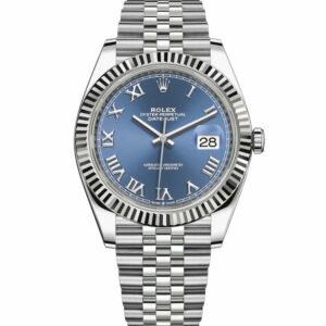 Rolex Datejust 41mm Azzurro Blue Roman Numeral Dial Fluted Bezel 126334